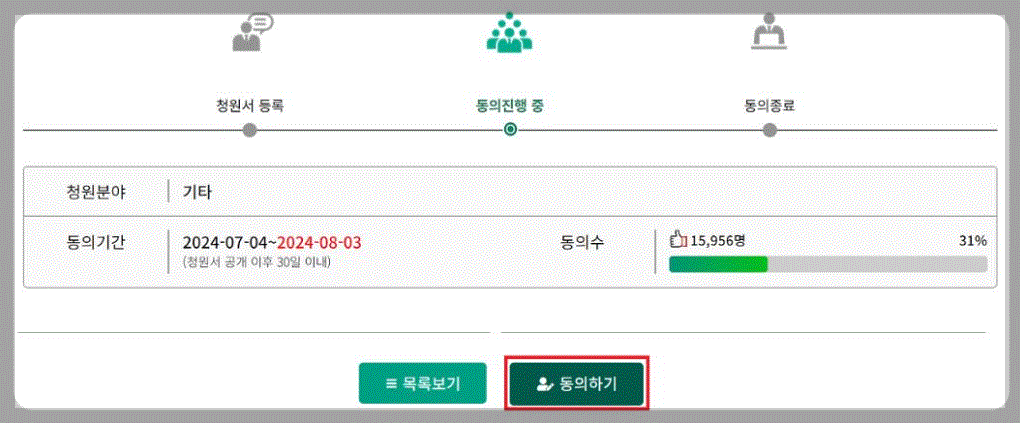 3. 청원 내용 확인 및 동의 버튼 클릭